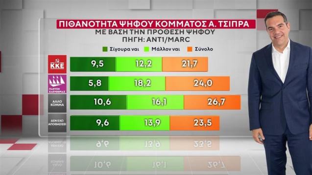 Σχετικά με την πιθανότητα ψήφου ενός κόμματος υπό τον Αλέξη Τσίπρα οι ερωτηθέντες απαντούν:
