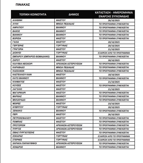 Επισημαίνεται ότι οι Τοπικές Κοινότητες Διονυσίου – Παναγιάς, Στερνών και Σοκαρά του Δήμου Γόρτυνας εξαιρέθηκαν από την εφαρμογή του προγράμματος δακοκτονίας κατά τη φετινή περίοδο. Οι καλλιεργητές που έχουν ελαιόδεντρα σ’ αυτές τις Τοπικές Κοινότητες δεν θα πληρώσουν εισφορά δακοκτονίας για τον ελαιόκαρπο που προέρχεται από αυτά τα ελαιόδεντρα. Εισφορά δακοκτονίας δεν θα πληρώσουν και οι ελαιοκαλλιεργητές που κατά το έτος 2025 άσκησαν τους κανόνες της Βιολογικής Γεωργίας.