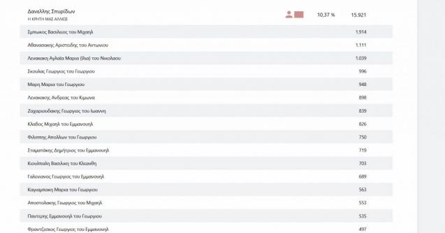 Στον συνδυασμό Η Κρήτη μας αλλιώς του Σπύρου Δανέλλη πρώτος σε ψήφους εξελέγη ο Βασίλης Σμπώκος και ακολουθεί ο Αριστείδης Αναστασάκης.