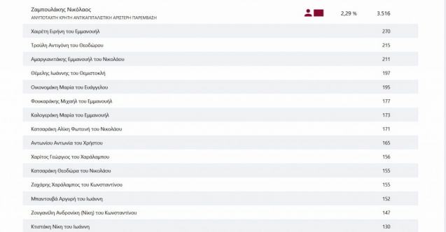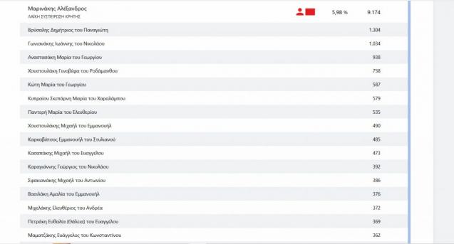 Συγκεκριμένα ο Συριγωνάκης Νικόλαος του Κωνσταντίνου έλαβε 23.084 ψήφους και ο Ματαλλιωτάκης Γεώργιος του Ιωάννη 13.345.